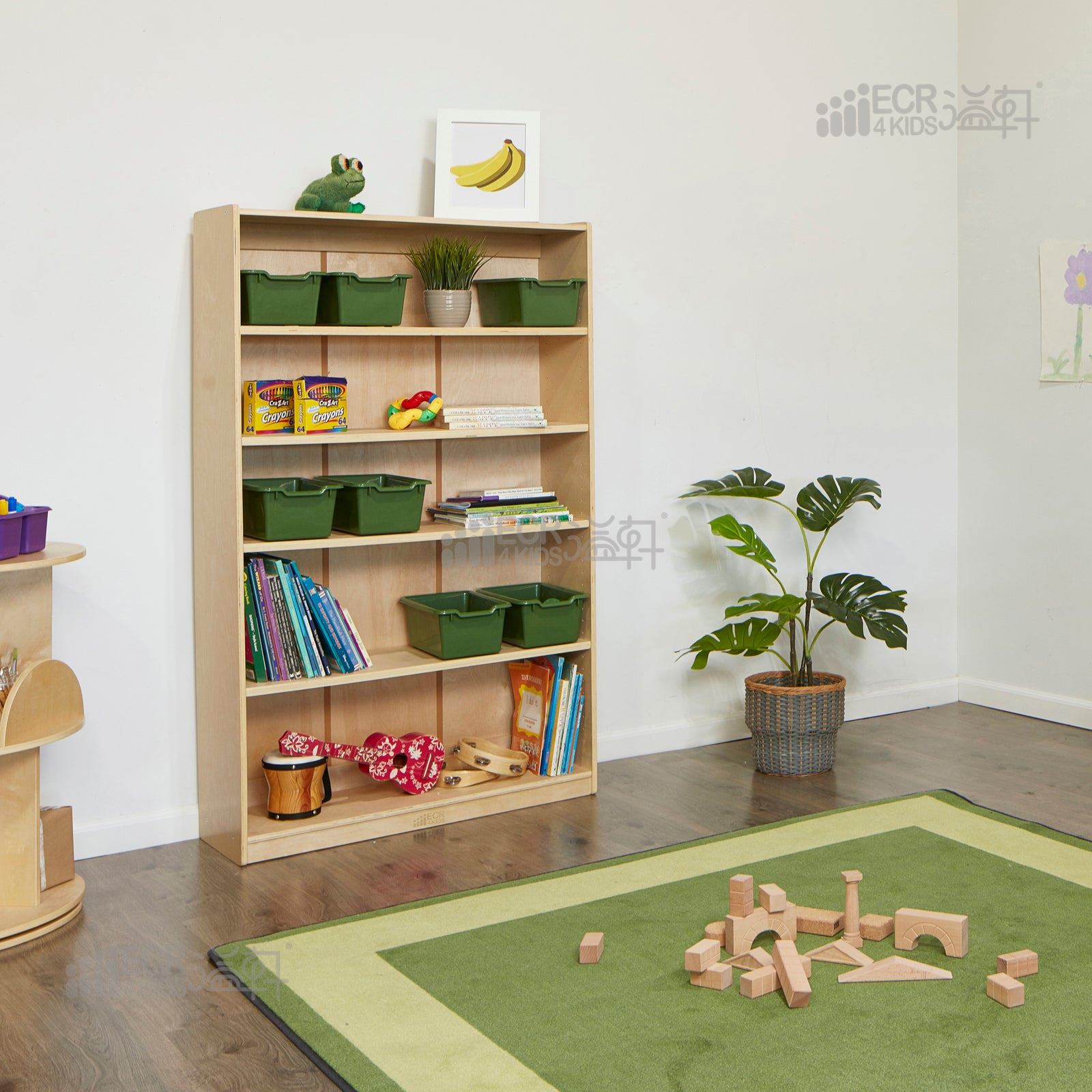 Five shelves provide ample space to store and organize books, board games, blocks, and arts and crafts supplies; four shelves adjust in 1.25” increments to maximize storage space.The forward-facing bookcase is the right size to allow children to read the spine or see the cover of books, prompting little ones to pick up a story and read in a school or playroom.Designed from a multistep process to maintain the natural characteristic and grain of the wood making each piece truly unique; designed to withstand daily wear and tear.Tall book case GREENGUARD [GOLD] Certified for low VOCs, TSCA, and CPSIA compliant; it features rounded edges for safety and an integrated wall fastener for stability.Montessori bookcase measures 36” D x 12” W x 60” H; adult assembly required; Adult Active Engaged & Direct Supervision Required.